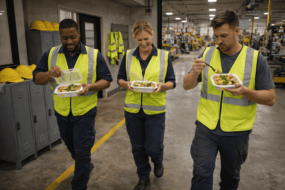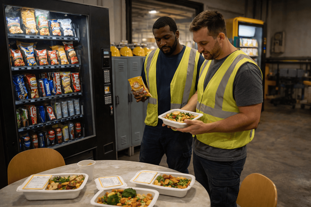 Learn how manufacturing facilities can provide reliable food for night shift workers with smart fridges, breakroom meal programs, and 24/7 meal access.