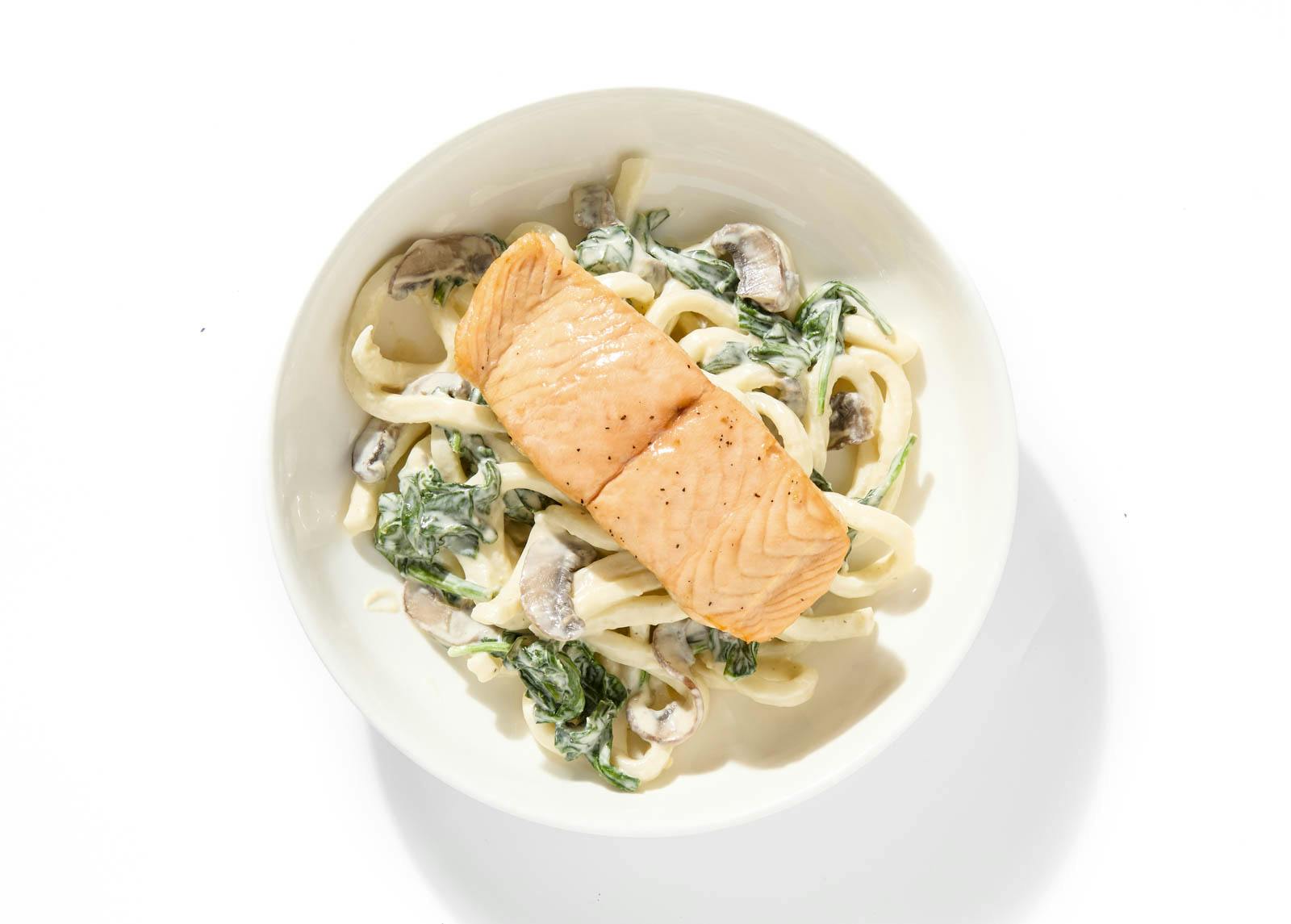 Creamy Miso Salmon over Udon