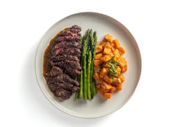 The hanger steak is by far a favorite and we will order again. The steak was cooked perfectly and was so tender. The red chimichurri is so good! Balsamic sweet potatoes are great too!