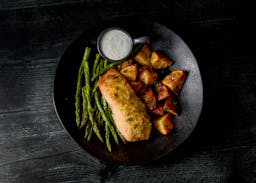 This was really good, the Parmesan crust on the salmon was great. Asparagus and potatoes were great sides.