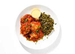 Although the greens were great, the chicken was a bit on the dry side. It might be better to use chicken thighs.