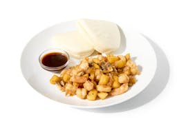 The bun was soaking wet. Dish was too wet even without sauce added.Not enough bun to stuff. Had too much stuffing. Meal was difficult to handle. Pieces chopped too small.Kept falling off spoon/fork.