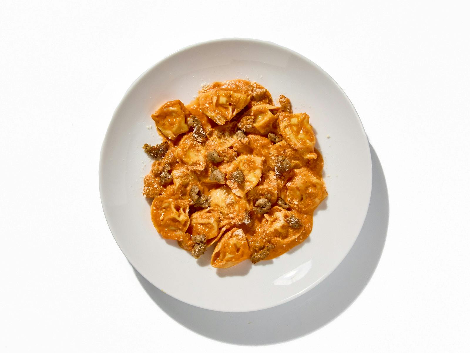 Canola and Olive Oil Blend, Butter, Red Onion, Garlic, Sugar, Heavy Cream, Kosher Salt, Red Sambal Chili Paste, Rigatoni, Vodka, Chicken Breast, Canned Tomato, Italian Herb Seasoning, Parmesan Cheese