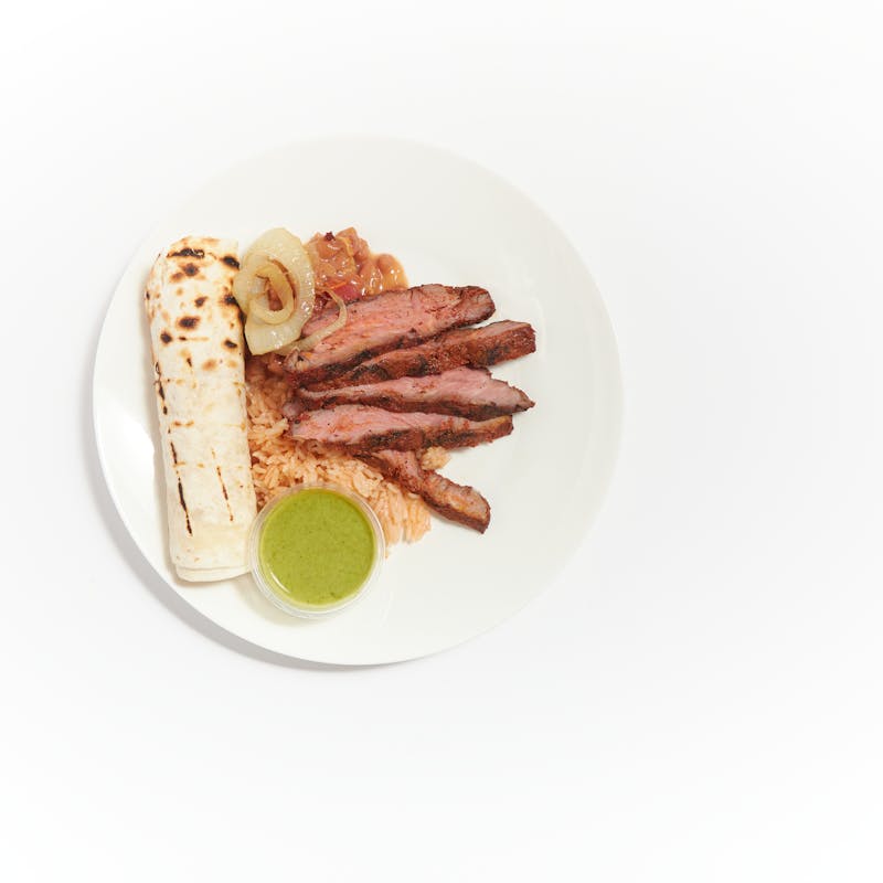 Beef, Flat Iron, Steak, 8 oz, Preportioned, Canned Pinto Beans, Flour Tortilla, Bacon, Serrano Peppers, Black Pepper, Cumin, Cilantro, Garlic, Canned Tomato, Achiote Paste, Sugar, Onion, Jasmine Rice, Kosher Salt, Tomato Sauce, Grapeseed Oil, Tomatillo, Lemon Juice, Orange Juice