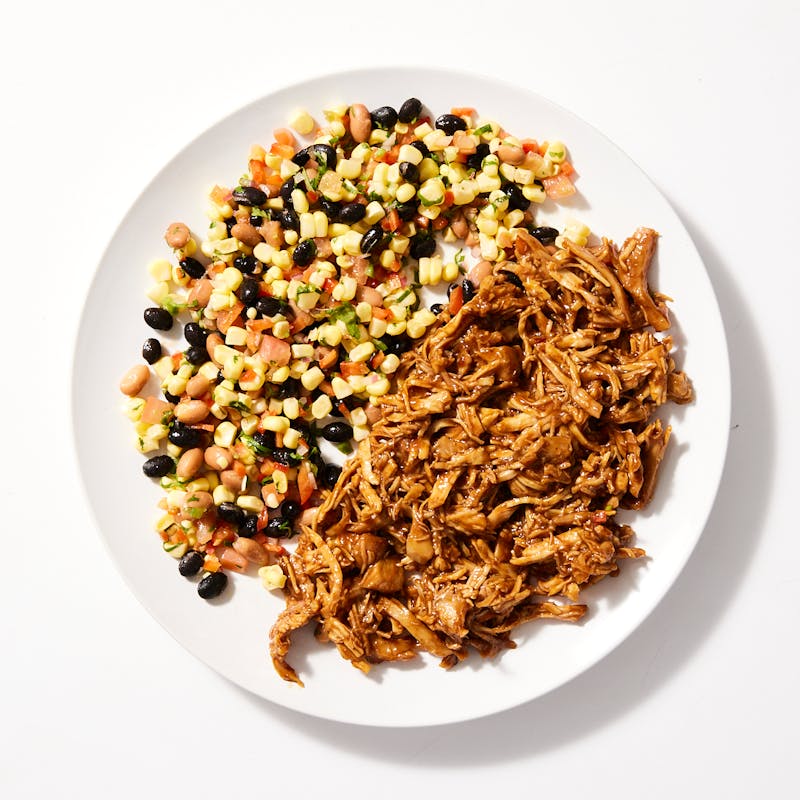 This is a dish for the BBQ lovers. Succulent chicken is braised in Chef Chris' BBQ sauce until pull-apart tender, then served atop a warm corn succotash consisting of fresh corn, black and pinto beans, tomatoes, onions, peppers, and cilantro. Topped with perfectly pickled onions, this dish is simple, sweet, spicy, and summery.