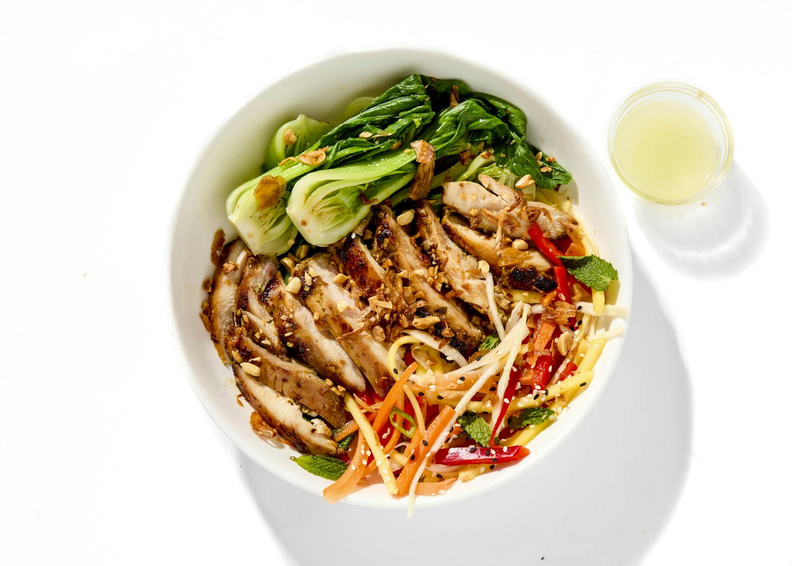 Light and easy-going yet totally satisfying for vegetarians and omnivores. Japanese buckwheat soba noodles' natural nuttiness is complemented by a savory peanut sauce, along with simply prepared tofu and mixed vegetables including red cabbage, and carrots. This Japanese-inspired dish is ideal for an energizing lunch or light dinner.