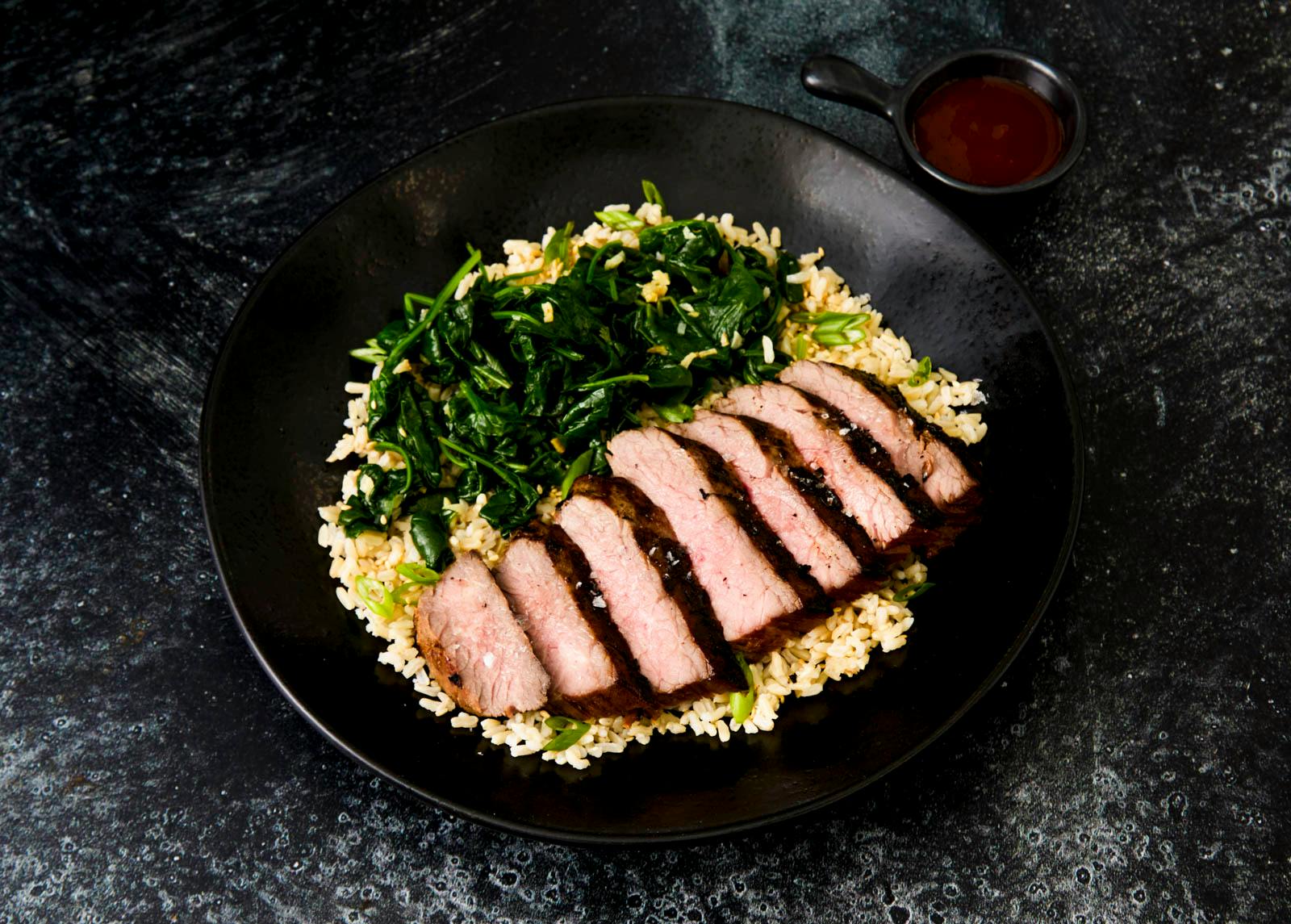 Aromatic and comforting, this green curry starts with coconut milk simmered with green curry paste, soy sauce, palm sugar, and fresh Thai basil. It’s filled with a medley of vegetables: roasted mushrooms tossed with ginger and garlic, sautéed red bell peppers, blanched broccoli, and tender bamboo shoots. Served with steamed jasmine rice, this plant-packed dish is creamy, herbaceous, and gently spiced.