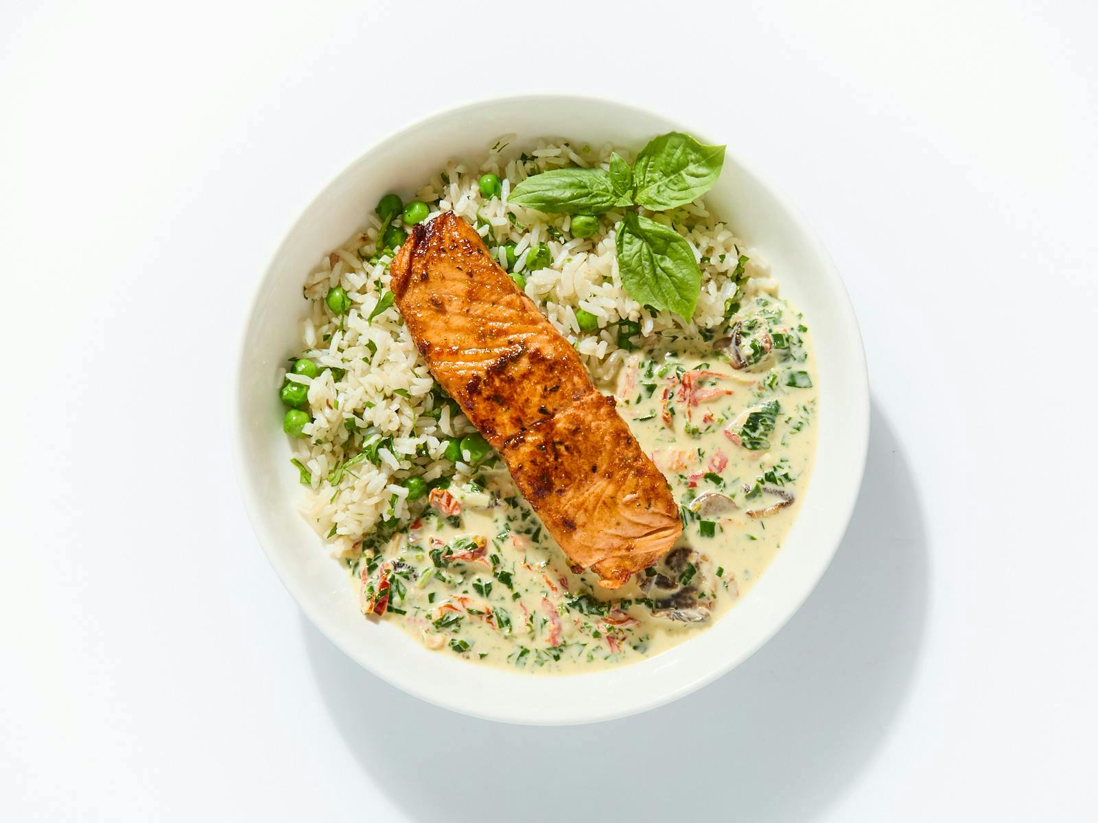 There are many ways to make chicken enchiladas with a red mole sauce, but this version from Chef Santiago is topped with a green mole made with tomatillo and cream cheese. The flavor-packed meal is completed with rice and pickled onions.