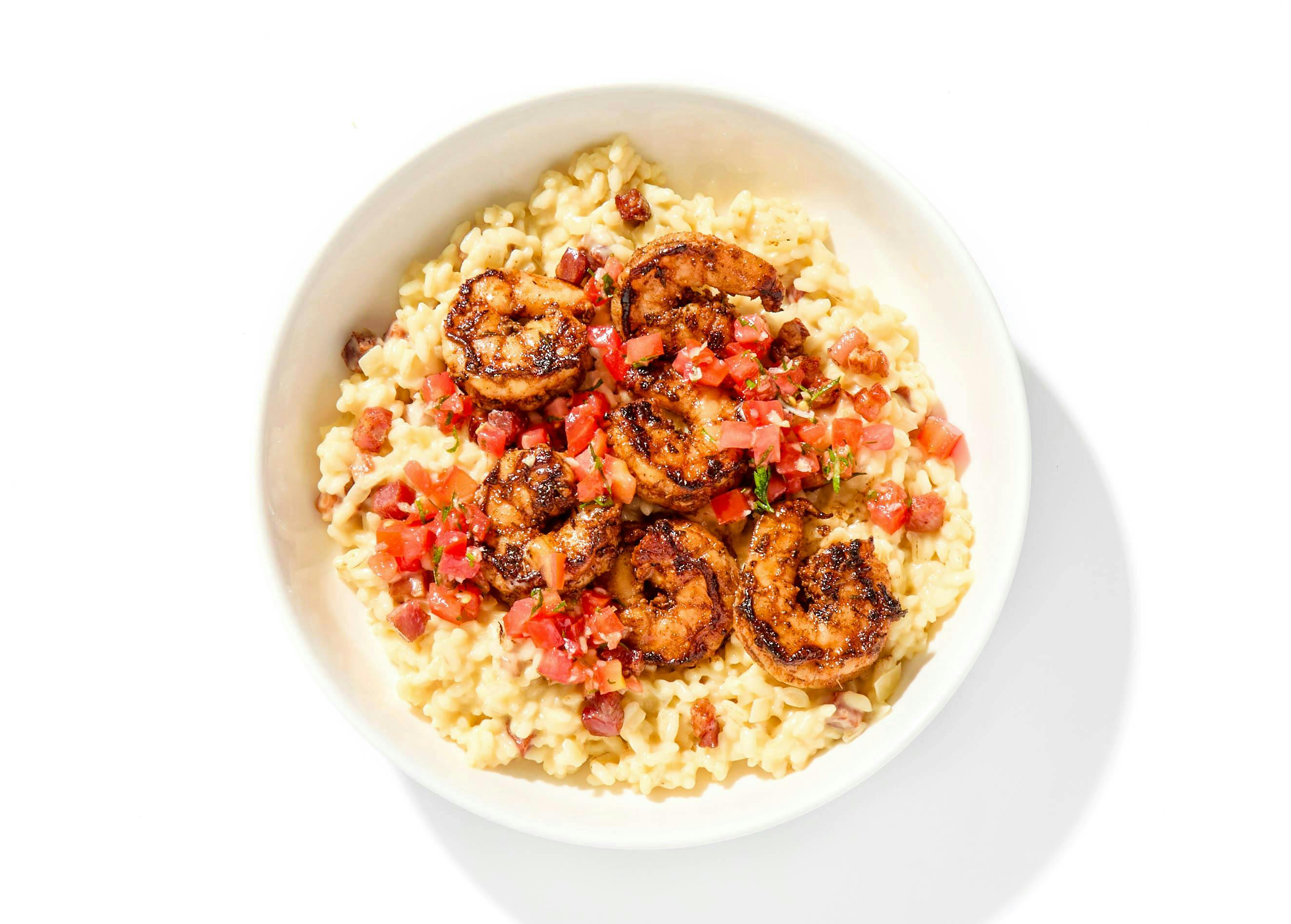 Pecorino Cheese, Canola and Olive Oil Blend, Butter, Canned Roasted Red Peppers, Cajun Spice, Shrimp, Black Pepper, Garlic, Onion, Kosher Salt, Canned Tomato, Rigatoni, Crushed Red Pepper, Basil, Italian Parsley, Parmesan Cheese, Paprika