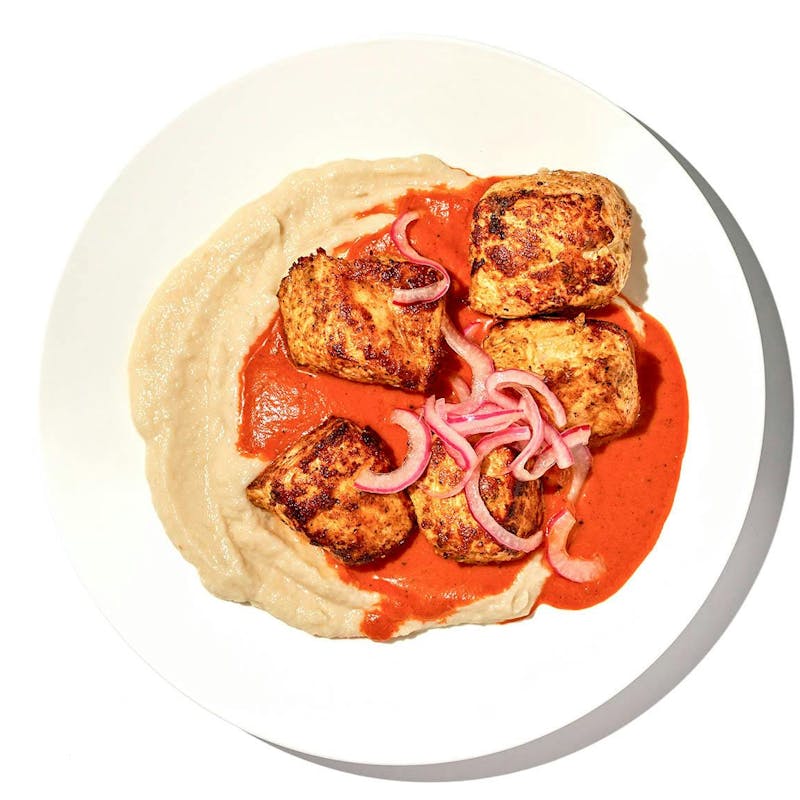 Chef Aarthi puts a spin on this beloved Indian-cuisine staple. The tender, juicy chicken breast and velvety smooth tomato sauce are fragrant with traditional spices. Pickled shallots give a pop of flavor and texture. And trading rice for a savory cauliflower mash keeps the carbs down without any compromise to flavor. “This dish is one of my favorites,” chef says. It’ll be one of yours, too.
