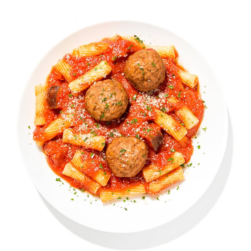 Ground Turkey, Eggplant, Tomato Puree, Rigatoni, Whole Milk, Parmesan Cheese, Egg, Brioche, Extra Virgin Olive Oil, Garlic, Sugar, Italian Parsley, Black Pepper, Kosher Salt, Cayenne Powder, Oregano