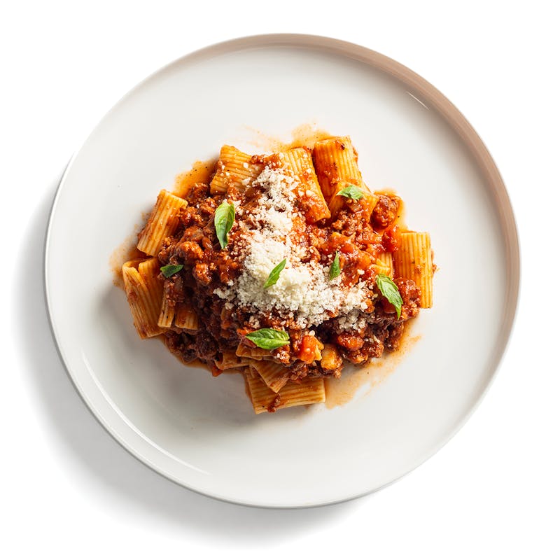 Ground Veal, Canola and Olive Oil Blend, Butter, Extra Virgin Olive Oil, Carrots, Black Pepper, Garlic, Fennel Seed, Sugar, Onion, Kosher Salt, Ground Italian Sausage, Thyme, Ground Beef, Rigatoni, Basil, Fennel, White Wine, Canned Tomato, Whole Milk, Parmesan Cheese