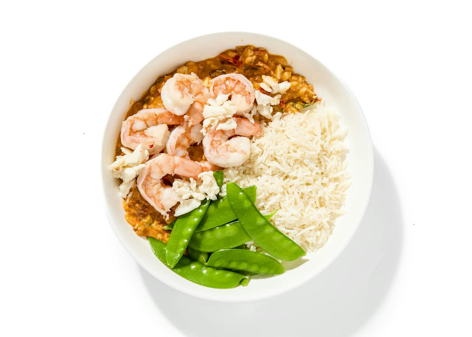 Coconut Milk, Yukon Potatoes, Chicken Thigh, Chicken Breast, Jasmine Rice, Carrots, Peas, Yellow Bell Pepper, Onion, Coconut Flakes, Cilantro, Garlic, Green Onion, Soy Sauce, Kosher Salt, Chicken Base, Butter, Curry Powder, Ginger, Habanero Peppers, Allspice, Sweet Paprika, Garlic Powder, Onion Powder, Black Pepper, Thyme