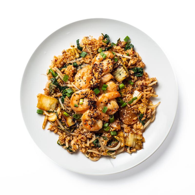 Your favorite comforting takeout dish gets a modern, Korean-inspired upgrade in Chef Chomsun's kimchi fried rice. Caramelized kimchi gets stir-fried with fluffy rice, plump shrimp, aromatic scallions, spinach, and bean sprouts all in a crunchy garlic and shallot-infused chili oil that will keep you coming back for bite after satisfying bite.