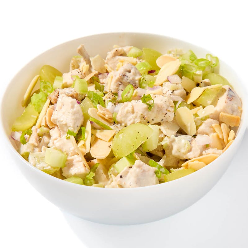 Chef Pat offers up his take on a traditional, crowd-pleasing chicken salad, a timeless classic. His version features diced juicy grilled chicken, Granny Smith apple, crunchy celery, red onion, fresh green grapes, and sliced almonds, all tossed in a mayonnaise-based dressing. Your favorite lunch just got even better.