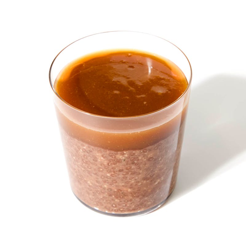 A decadent and protein-powered snack with a hint of banana! These creamy chocolate overnight chia-oats are made with real, whole ingredients: ripe banana, oats, hemp seeds, and plant-based protein. It's layered with a homemade, vegan salted miso caramel and naturally sweetened with agave, a low-glycemic sweetener that supports sustained energy. Each serving delivers 21g of protein and 14g fiber from oats, chia, and hemp seeds, for fullness that lasts.