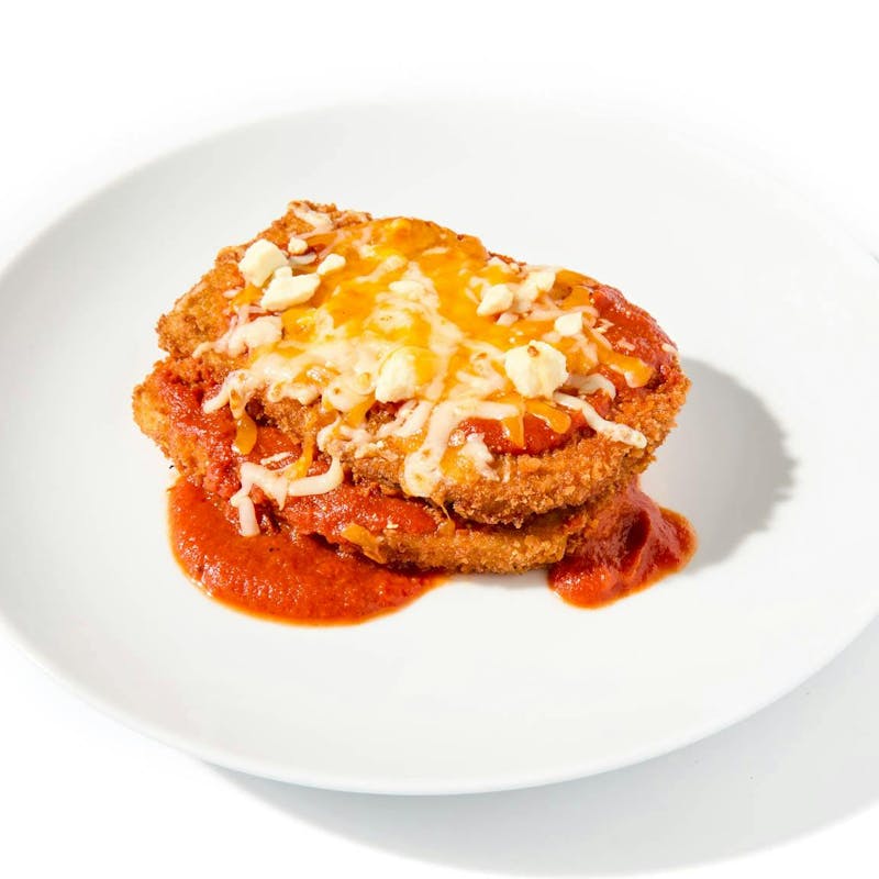 A Middle Eastern version of an Italian-American classic. Thin slices of tender-cooked eggplant are layered with a slightly spicy tomato sauce, and a combination of creamy mozzarella, flavorful parmesan and briny crumbled feta.