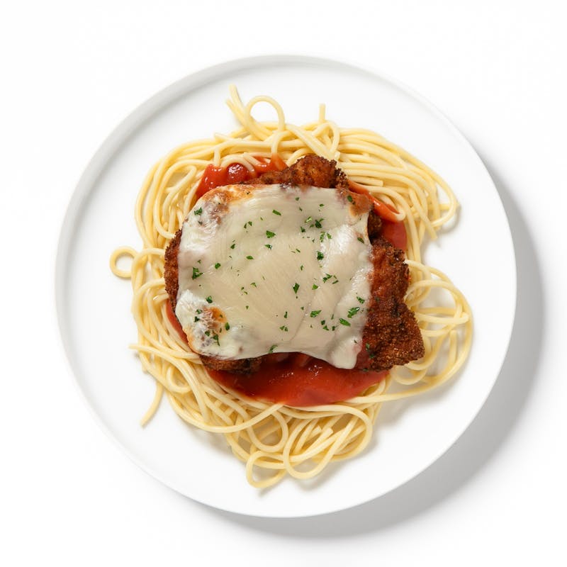 A golden-crusted chicken cutlet, nestled perfectly atop a bed of steaming spaghetti and savory tomato sauce. This classic Italian-American dish is more than just a meal: it's a heartwarming experience that soothes the soul and satisfies the senses.