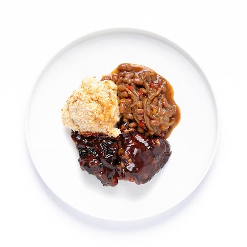 This meal is an explosion of next level comfort food flavor! Bone-in chicken thighs are marinated in an orange marmalade-infused BBQ marinade and paired with creamy mac and cheese inspired by pimento cheese, a Southern staple. Brown sugar baked beans complete the comfort food trifecta in this delicious dish!