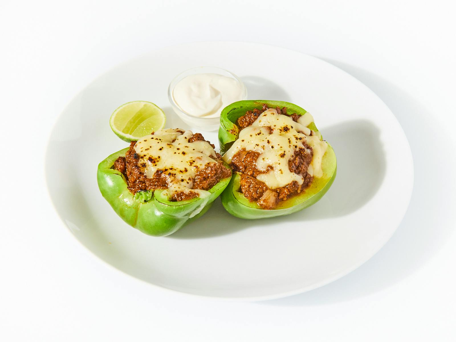 This nourishing, carb-conscious dish begins with roasted bell pepper halves, softened in the oven with olive oil and a pinch of salt. They're filled with slow-simmered chili made from ground beef, garlic, onion, tomato, and a punchy Caribbean-style seasoning known as epis. A blend of white cheddar and Monterey Jack adds a creamy finish, melted over the top.