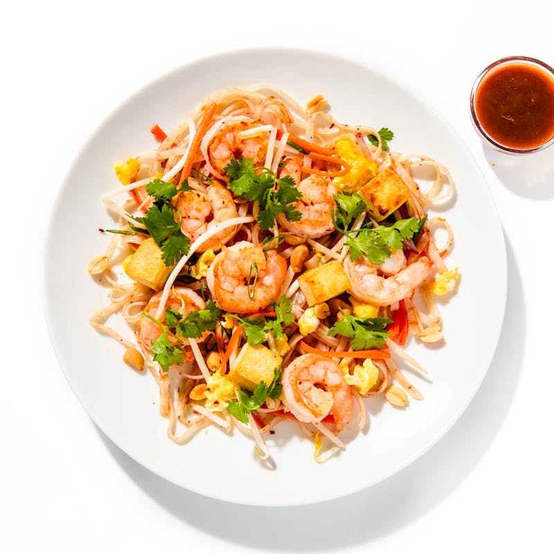Canola Oil, Shrimp Base, Canola and Olive Oil Blend, Fish Sauce, Carrots, Tamarind Paste, Pad Thai Noodles, Shrimp, Cilantro, Garlic, Egg, Kosher Salt, Shallot, Peanuts, Tofu, Light Brown Sugar, Lime, Green Onion, Crushed Red Pepper, Bean Sprout