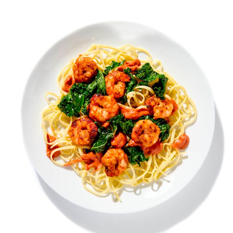 Bay Leaf, Coriander Seeds, Butter, Carrots, Onion Powder, Garlic Powder, Shrimp, Black Pepper, Garlic, Fennel Seed, Heavy Cream, Onion, Kosher Salt, Tomato Sauce, Linguine, Chicken Base, Grapeseed Oil, Kale, Thyme, Crushed Red Pepper, Paprika