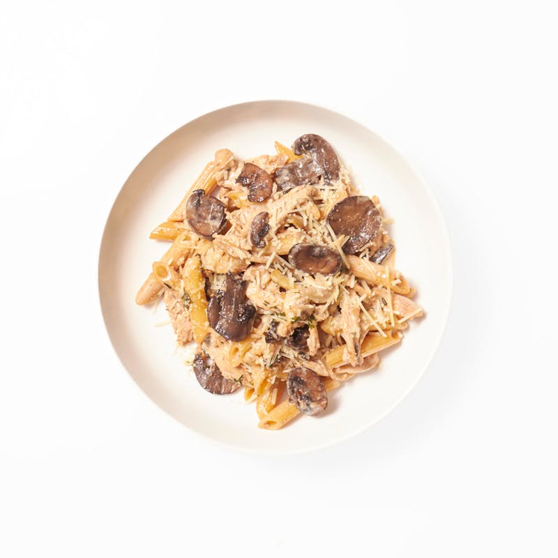 Simply seasoned chicken breast and plump penne pasta are generously coated in a luxurious cream sauce infused with Marsala wine. The flavors are enriched even more with sautéed cremini mushrooms and shredded parmesan.
