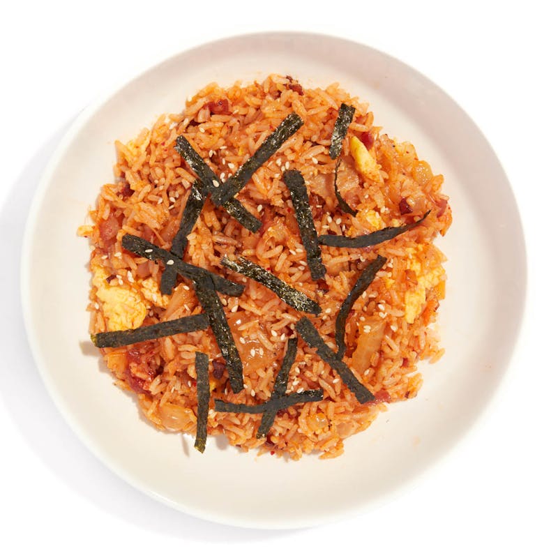 Gochujang Paste, Sesame Oil, Canola and Olive Oil Blend, Butter, Egg, Nori, Kimchi, Onion, Jasmine Rice, Kosher Salt, Bacon, Green Onion, Toasted Sesame Seeds, Soy Sauce