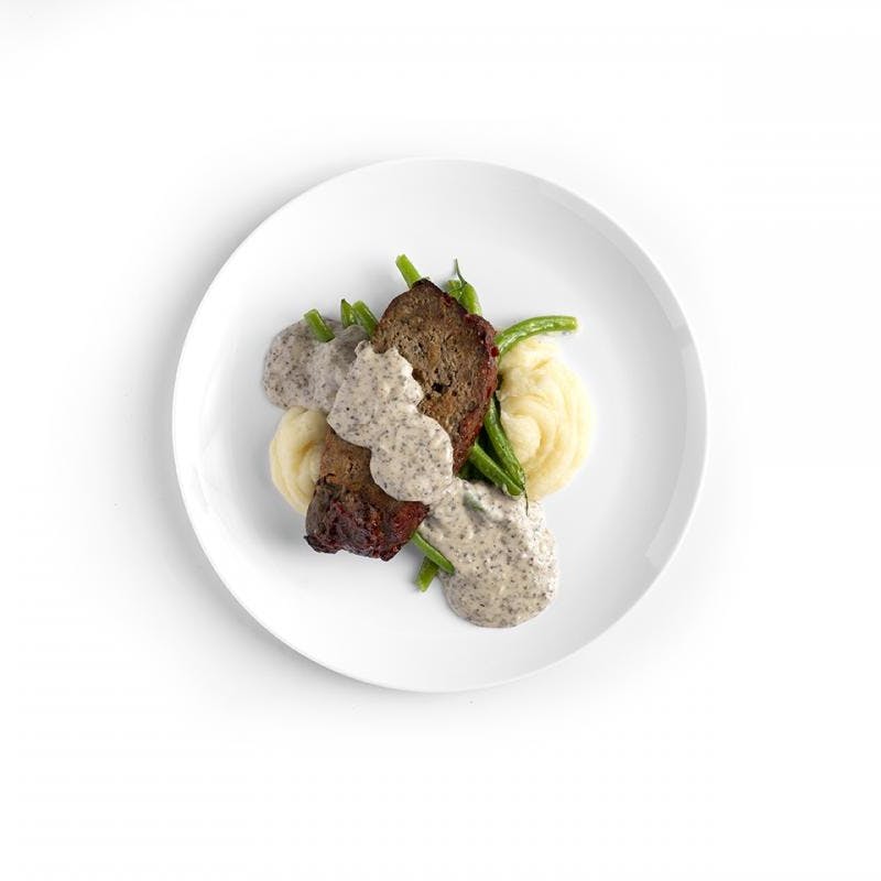 Ground Beef, Yukon Potatoes, Haricot Vert, Crimini Mushroom, Onion, Heavy Cream, Egg, Butter, Ketchup, Panko Breadcrumbs, Garlic, Extra Virgin Olive Oil, Kosher Salt, Beef Base, Italian Parsley, Brown Sugar, Apple Cider Vinegar, Worcestershire Sauce, Canola Oil, Black Pepper, Oregano, Dijon Mustard, Gum, Xanthan, Thyme