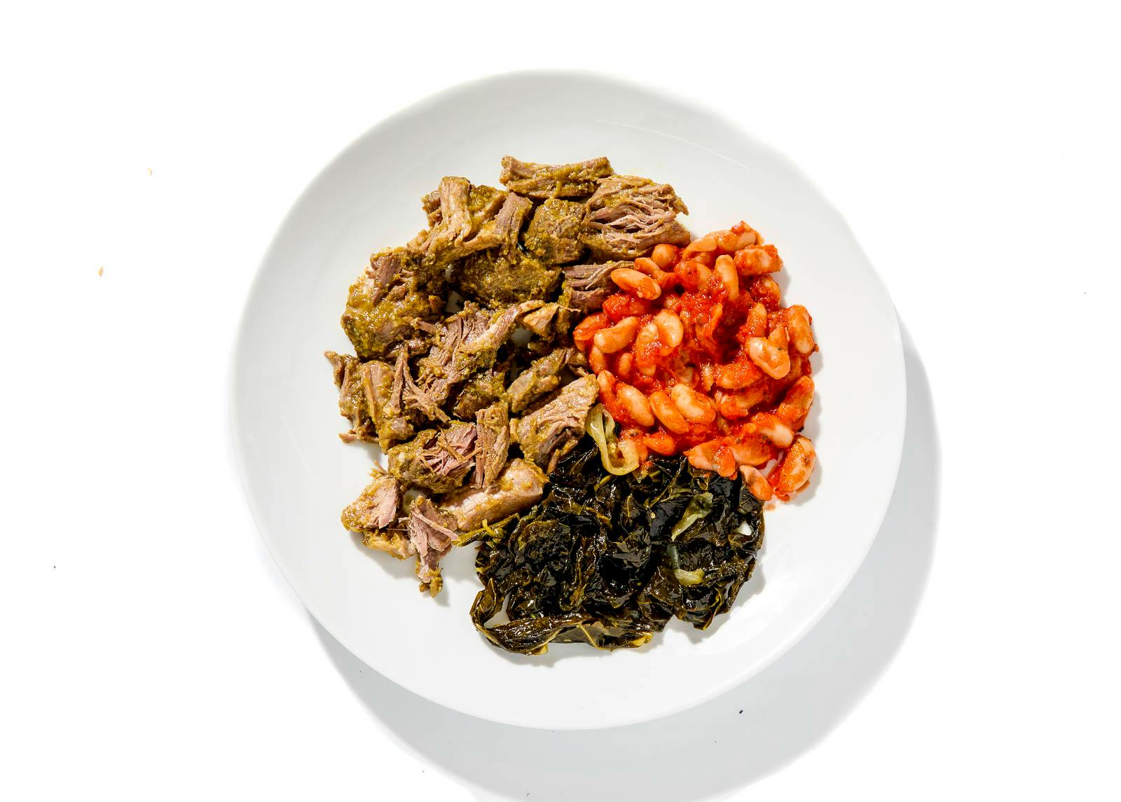 Whether you’re planning for lunch or dinner, Chef Maribel has your macros in check with lean chicken breast roasted with her signature sauce—a vibrant, handcrafted blend of tangy roasted tomatillos, garlic, onion, and serrano chiles. (There’s more on the side for drizzling, too.) She pairs a hearty portion of the chicken with fresh baby spinach leaves, nutty brown rice, and hearty black beans. A side of zesty Escabeche—quick-pickled jalapeños, carrots, onions, cauliflower, and garlic with oregano—brightens all the flavors and adds mild spice.