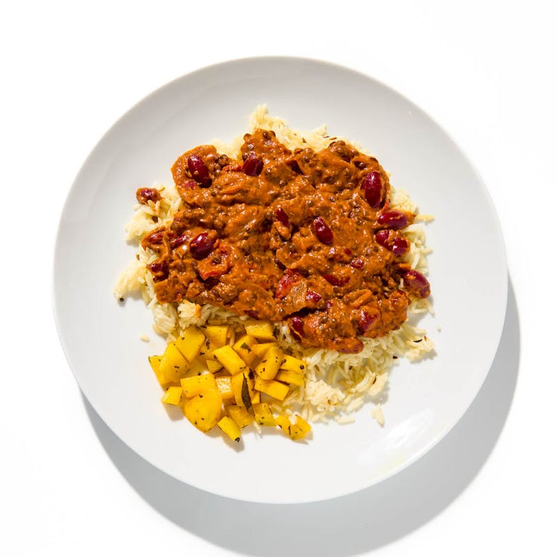 Dal is one thing, but Chef Meena’s dal makhani is quite another. Black lentils and red kidney beans bubble away until irresistibly soft, thickened into a rich, creamy sauce with ripe tomatoes. This lush mix is layered with spices, like garam masala, along with ginger, garlic, and a flicker of heat from kashimiri chili. It’s served with cumin-scented basmati rice, and a refreshing mango salad to cut through the creaminess.