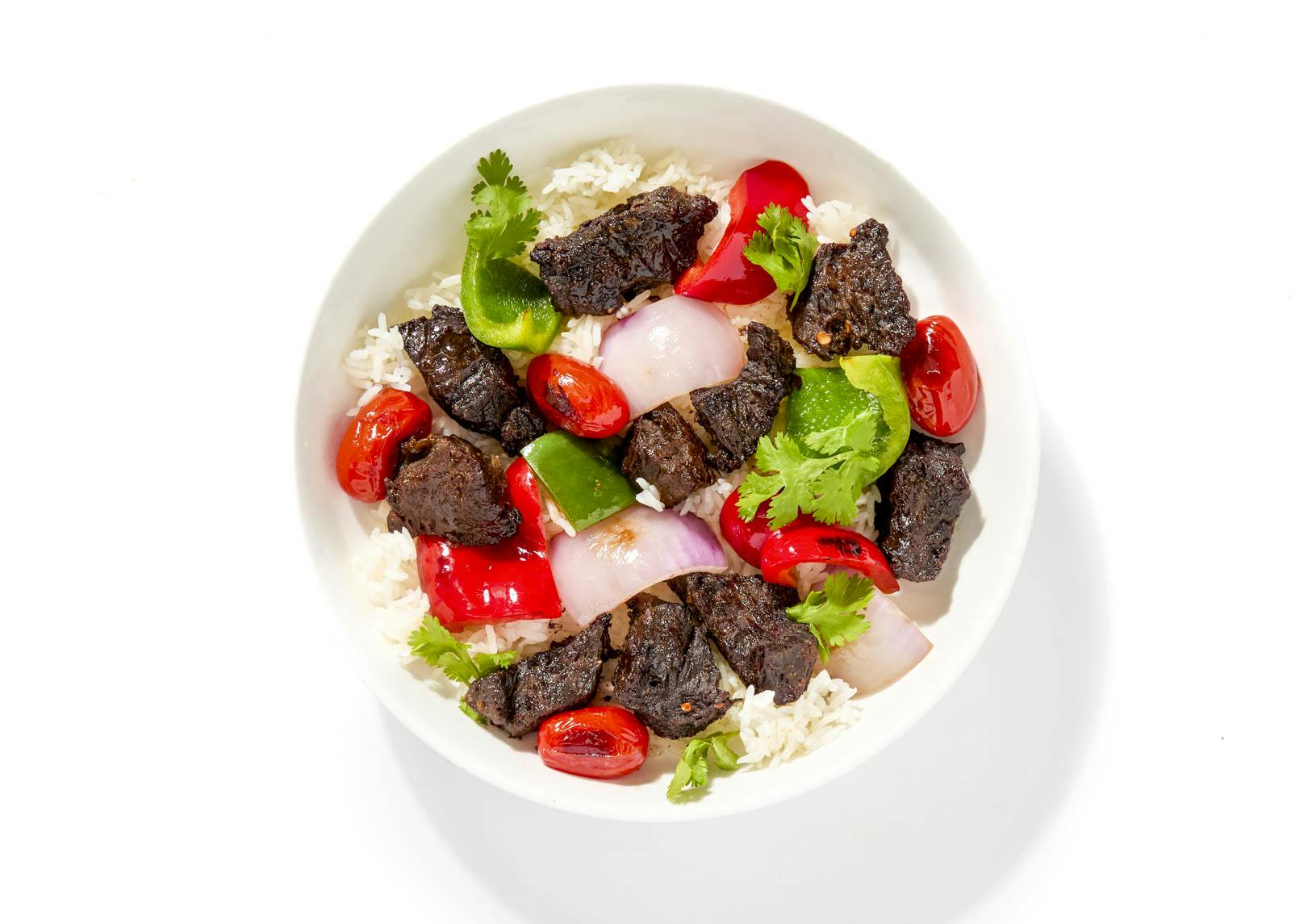 This wok-seared Vietnamese-style steak is all about bold flavor and quick technique. Cubes of marinated hanger steak are flash-seared until caramelized, then finished in butter for extra richness. Served with blistered cherry tomatoes and fluffy jasmine rice, plus a touch of cilantro to balance it out.