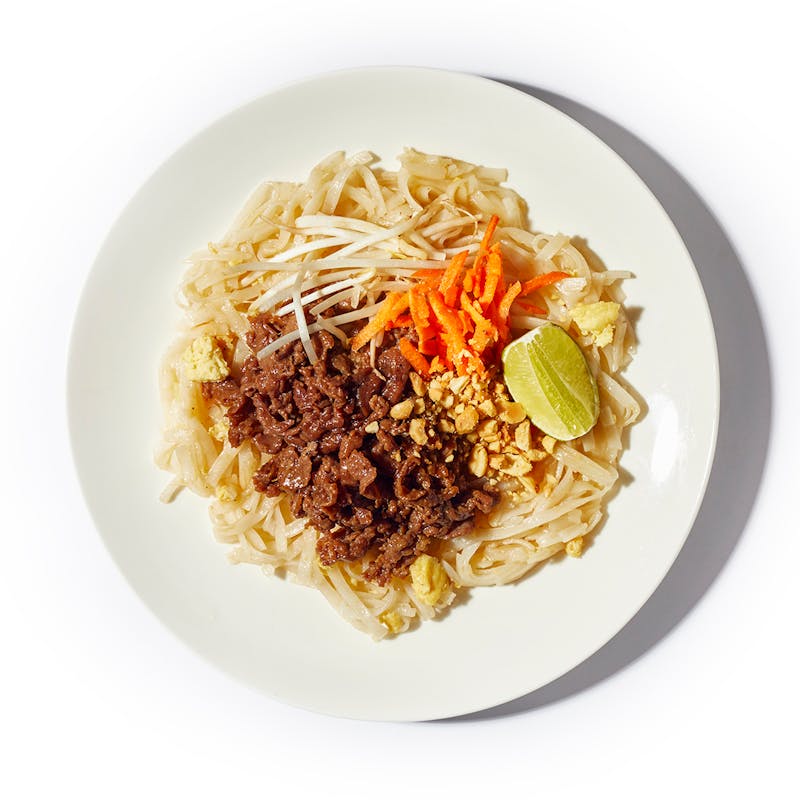 Chef Stacy's fresh take on a Thai street food favorite will have you tossing the takeout menus for good. Tender rice noodles are stir-fried with bean sprouts, scrambled egg, and veggies in an irresistibly tangy sauce. The crave-worthy noodles are topped with stir-fried black pepper beef and finished with shredded carrots, chopped peanuts, and a lime wedge to squeeze on top.