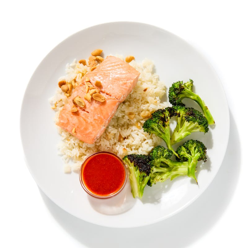 Canola Oil, Long Grain White Rice, Canola and Olive Oil Blend, Broccoli , Black Pepper, Garlic, Kosher Salt, Peanuts, Guajillo Chile, Chipotle in Adobo, Lime Juice, Salmon