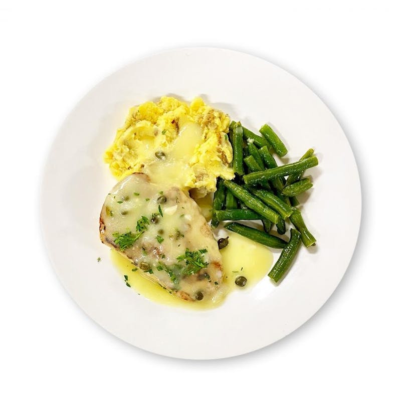 Canola and Olive Oil Blend, Butter, Black Pepper, Capers, Garlic, Corn Starch, Heavy Cream, White Pepper, Kosher Salt, Green Beans, Chicken Base, Yukon Potatoes, Chicken Breast, Whole Milk, Italian Herb Seasoning