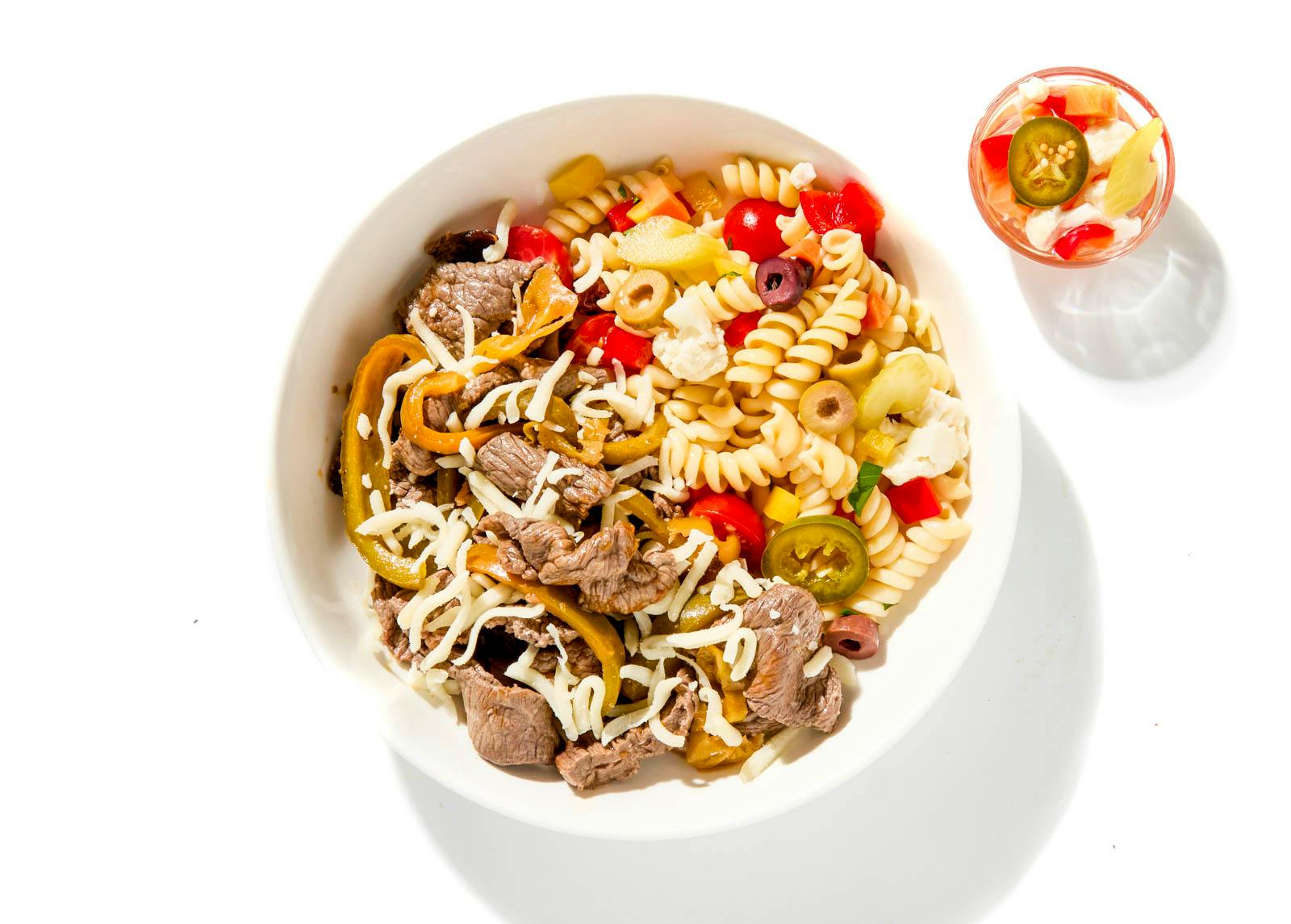 Imagine sinking your fork into a bowl of perfectly seasoned, tender Italian beef nestled with melted mozzarella and provolone. Each bite brings you a savory balance of beef, charred bell peppers, and a bold hint of smoky bacon and pepperoncini, while a tangy side of giardiniera pasta salad provides that classic Chicago kick. This bowl is all about embracing the comfort of Chicago’s iconic sandwich yet reimagined into a satisfying, mess-free meal that's ready to savor any day of the week.