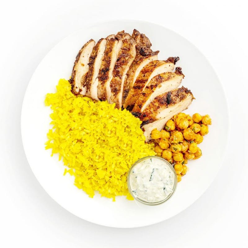 Canola and Olive Oil Blend, Coriander Seeds, Turmeric, Extra Virgin Olive Oil, Red Onion, Coriander, Cumin, Garam Masala, Cilantro, Garlic, Jasmine Rice, Kosher Salt, Cucumber, Coconut Milk, Lime Juice, Canned Chickpeas, Lemon Juice, Greek Yogurt, Ginger, Crushed Red Pepper, Chicken Breast, Paprika