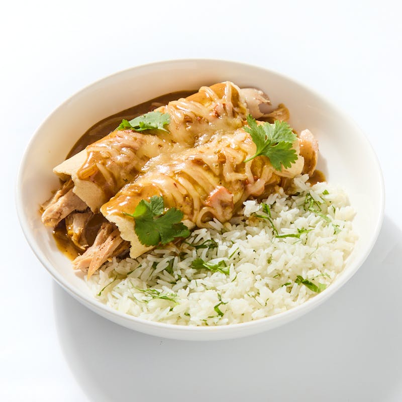 Chef Jona brings together the bold comfort of Mexican enchiladas and the soulful warmth of Japanese curry in this playful creation. Tender chicken is wrapped in soft tortillas, smothered in a fragrant Japanese-style curry sauce, and layered with plenty of melty pepper jack cheese. Served alongside aromatic cilantro rice, it’s a rich, cross-cultural celebration of spice, comfort, and harmony on the plate.
