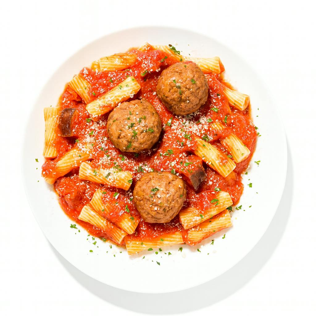 Turkey Meatballs over Rigatoni