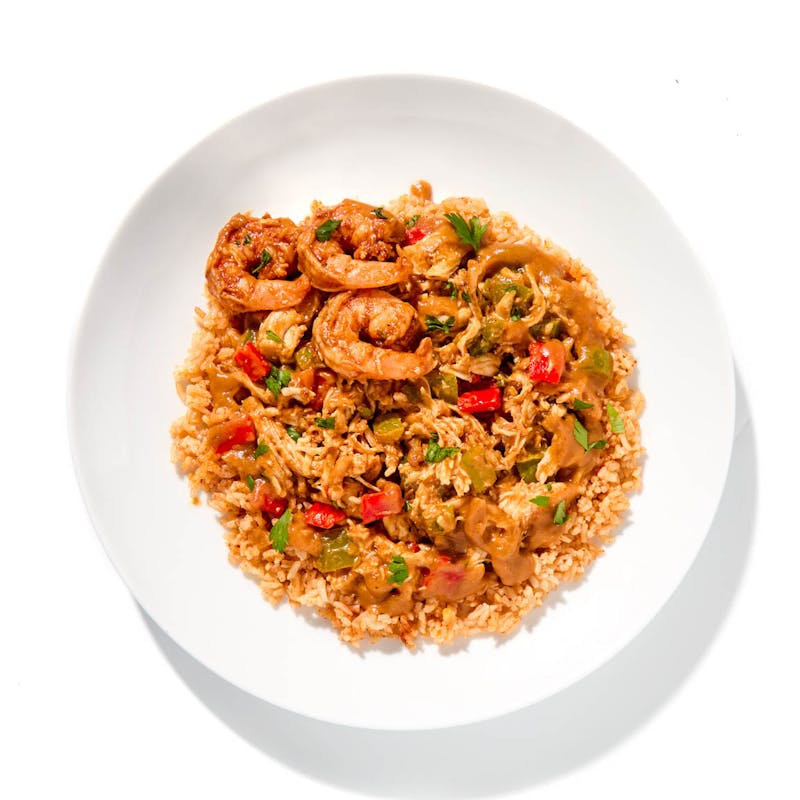 Long Grain White Rice, Canola and Olive Oil Blend, All Purpose Flour, Butter, Cajun Spice, Shrimp, Garlic, Kosher Salt, Jalapeno Peppers, Chicken Base, Gumbo Powder, Green Bell Pepper, Chicken Breast, Red Bell Pepper, Canola Oil, Italian Parsley