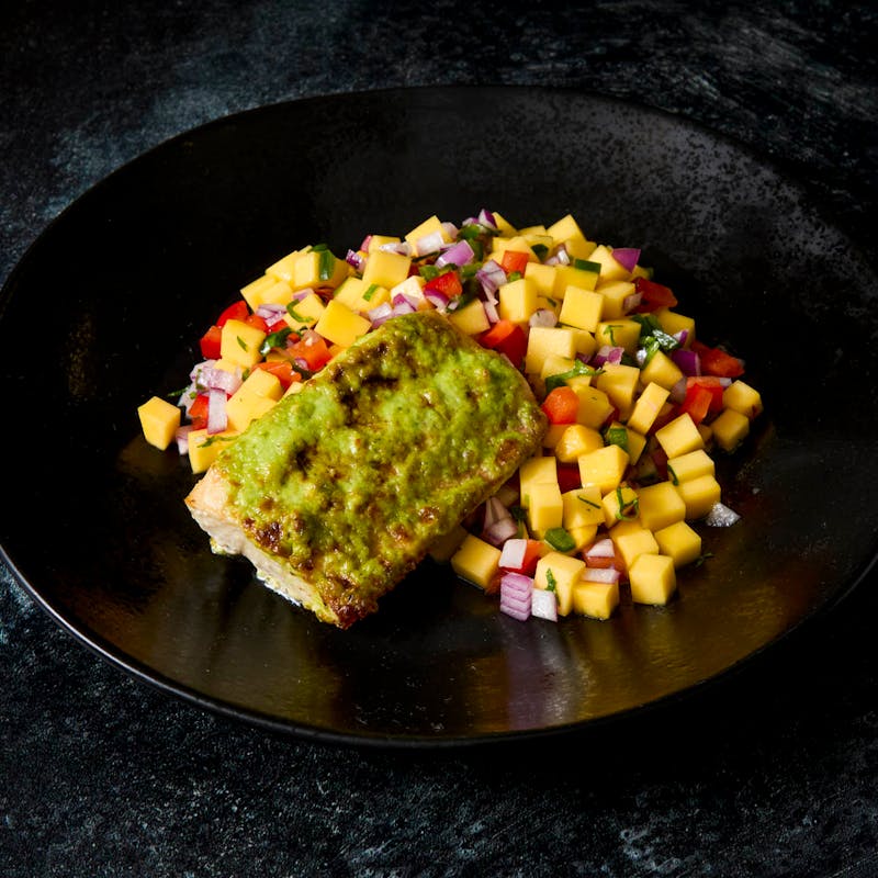 Chef Roberto's vibrant creation combines grilled mahi mahi with a refreshing and spicy mango pico de gallo. The mahi mahi is seasoned with a mix of garlic and lime juice to bring out its natural richness. The mango salsa incorporates red bell pepper and cilantro for a refreshing burst of textures and flavors.