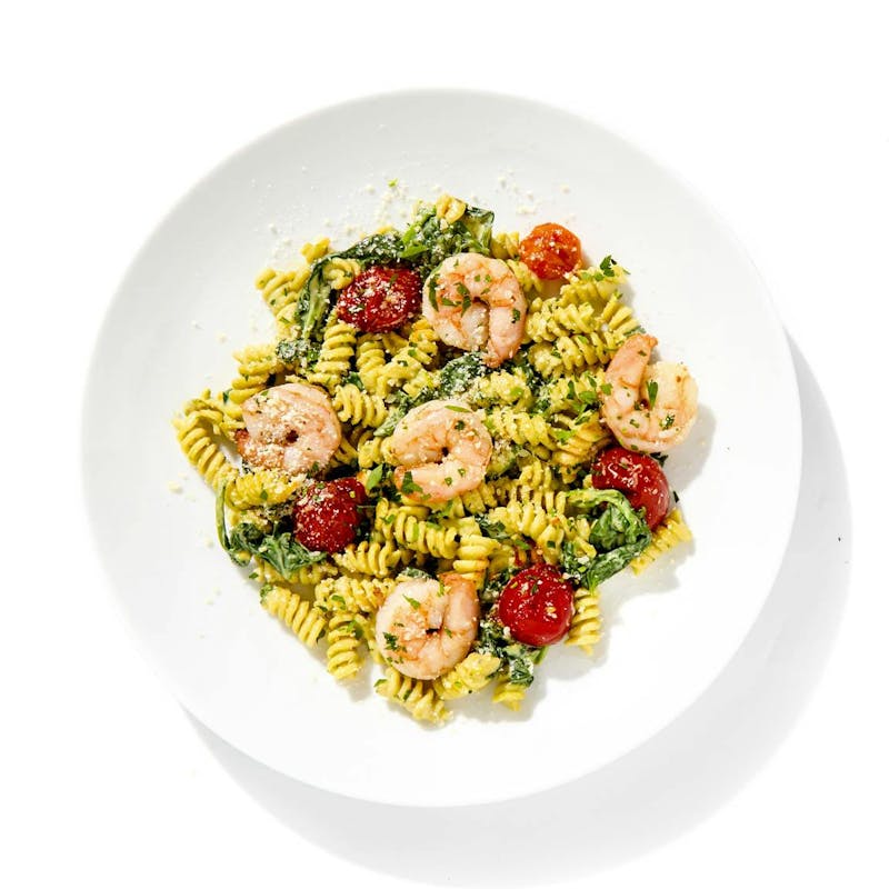 Pistachio Pesto Rotini with Shrimp
