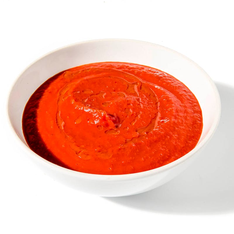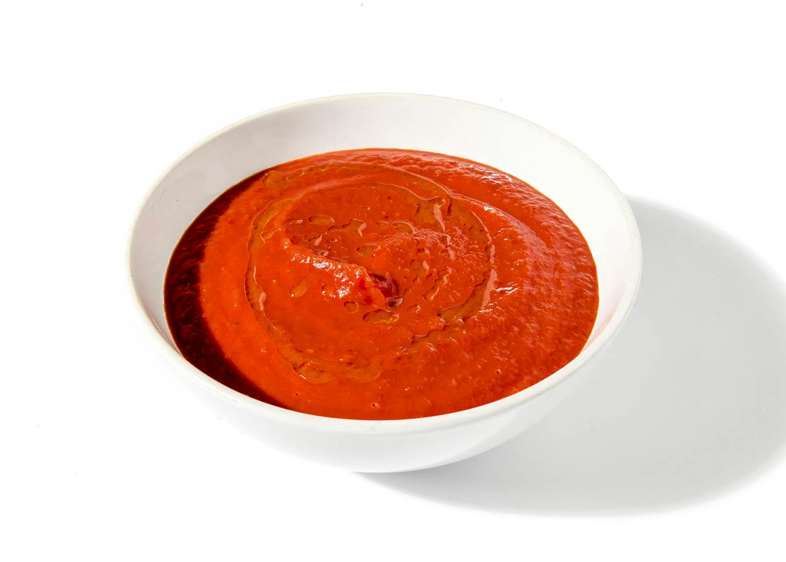 A gentle soup of crushed tomatoes simmered with onion, garlic, and fresh basil. Blended to a soft velvet, it’s mellowed with a trickle of cream to give the soup its silken finish. A scattering of Parmesan lends just the right depth and saltiness, with a turn of black pepper to finish.