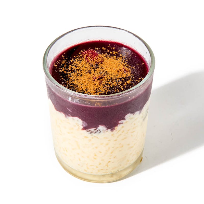 This spiced, creamy dessert layers two beloved Peruvian treats. Arroz con leche is gently simmered with cinnamon, clove, and sweetened milk, then finished with raisins, orange zest, and coconut. It's topped with mazamorra morada—a jewel-toned pudding made from purple corn, pineapple, apples, and warm spices. Cooked until jammy, it brings gentle tartness and depth to this comforting, layered classic.
