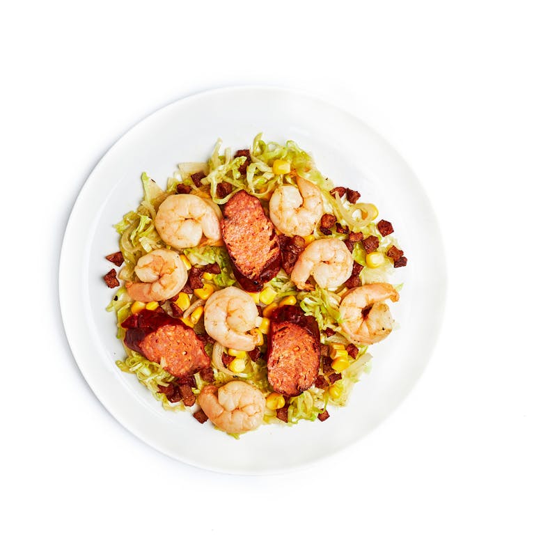 Salt, Garlic, Celery Salt, BBQ Sauce, Brown Sugar, Andouille Sausage, Canned Corn, Old Bay Seasoning, Potato, Onion Powder, Garlic Powder, Shrimp, Black Pepper, Sweet Paprika, Sugar, Onion, Kosher Salt, Cabbage, Liquid Smoke, Cayenne Powder, Mustard Powder