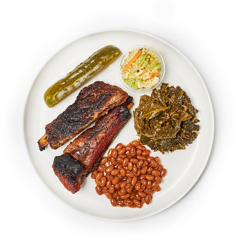Treat yourself to a flavorful and hearty BBQ meal with Bubb's' signature Memphis-style pork ribs, slow-cooked baked beans, braised greens, and coleslaw. The star of the dish are the ribs, high-quality baby back ribs, rubbed in a traditional Memphis-style dry rub that gives them a tangy and spicy flavor. The ribs are then slow-cooked in a smoker until they are fall-off-the-bone, melt-in-your-mouth tender and delicious. Paired with bacon-laden braised greens and smoky baked beans, plus sides of coleslaw for a pop of acidic freshness, this dish has everything you'd expect in an authentic BBQ plate. If you're looking for a mouth-watering, finger-licking dish, these ribs are the perfect choice.
