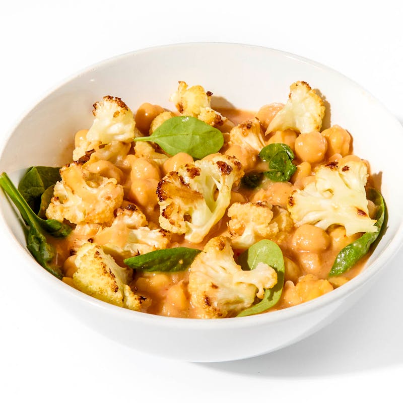 This rustic chickpea stew comes infused with sweet Spanish paprika, cumin, and tangy sherry vinegar, simmered to deepen every note. Baby spinach melts into the mix, and roasted cauliflower florets bring nutty sweetness and a bit of char. It's the kind of bowl that energizes without weighing you down.