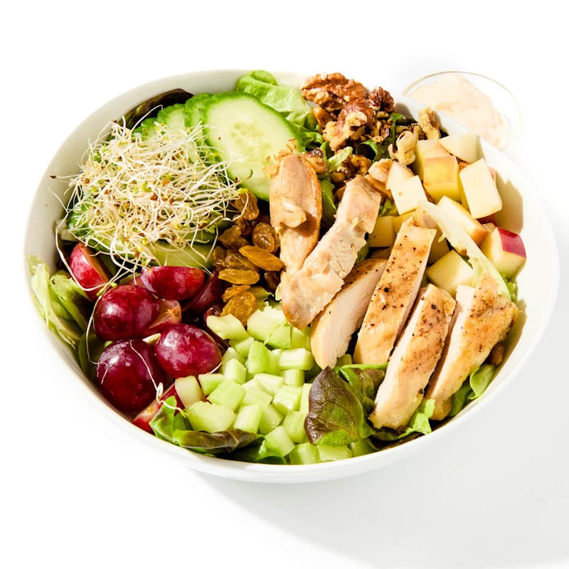 The Waldorf salad got its name in 1893, when it debuted at a charity event at New York’s Waldorf-Astoria Hotel. Here, Chef Miguel gives it a subtle refresh, starting with tender roasted chicken breast, coated in a zesty lemon marinade. It sits atop a bed of baby kale that brims with the refreshing crunch of celery and apple. Studded with sweet pops of raisins and toasty walnuts, it’s then tossed in a creamy mayonnaise dressing that lightens and brightens this entire bowl.