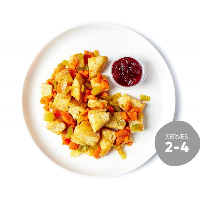 Chef Nelson's herbed stuffing is a step above the stuff from the bag, and may just ruin your for all other stuffing. Packed full of cubed country-style bread, it's infused with hardy herbs like sage and thyme, along with the typical mirepoix and garlic. Altogether they form the perfect balance of traditional Thanksgiving flavors, especially when served alongside Chef's fresh cranberry sauce that's tart and sweet with hints of cinnamon and orange.