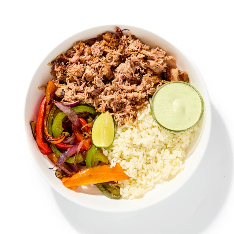 Inspired by recent trips to Japan, Chef Brandon crafts a layered bowl of tender soy-braised pork shoulder served with ginger-scallion rice and fajita-style charred peppers. A creamy avocado-lime salsa on the side cools the heat while pulling every element into balance.